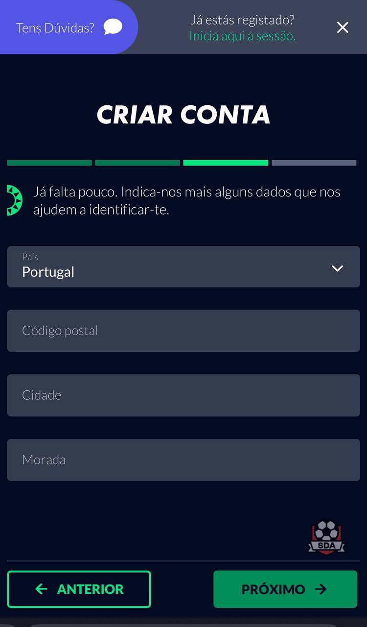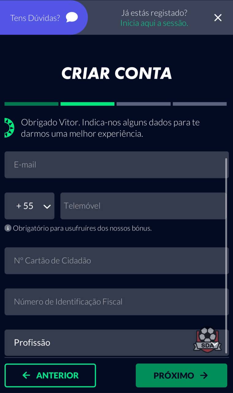 3. Insira email, telemóvel e um documento para a verificação da identidade, como passaporte, número de identificação fiscal e número do cartão de cidadão.